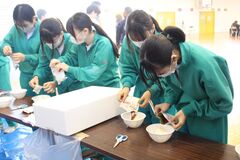 避難所開設について話し合ったり、簡易トイレの組み立てたり、非常食のカレーライスを一緒に食べたりしました。今回のように地域の方と一緒に取り組むことができ、防災についての理解が深まりました。