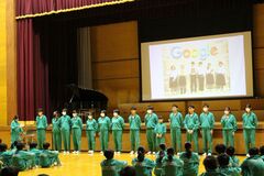後半は中学生が、各学年ごとに「貢献」をテーマにした取組を発表しました。 今年度は、これまでの絆スクール集会と比べ、小中学生それぞれに活躍の場があったり、絆を深める活動があったりしました。今回の取組により、小中学校の一体感と自己有用感を高めることができました。